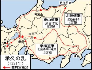 京都の後鳥羽上皇は鎌倉幕府執権の北条義時に対し、追討の院宣を発して諸国の兵を