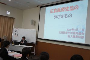 先ず、斉藤専務理事より「広島医療生協のめざすもの」と題して、広島医療生協のビジョンについて講義があり冒頭、