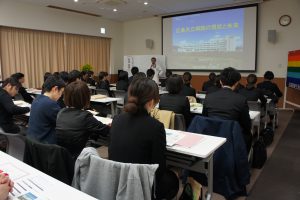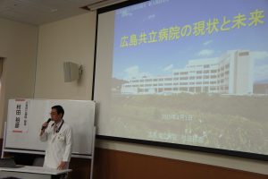 広島共立病院・村田院長からは「広島共立病院の現状と未来」について講義があり、広島共立病院の生い立ちから五ヶ年計画、