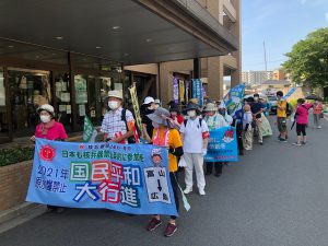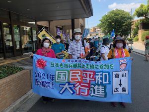 コロナ下の今年もとりわけ暑い炎天下でしたが、平和行進に核兵器廃絶の思いをつなぎました。国民平和大行進の富山