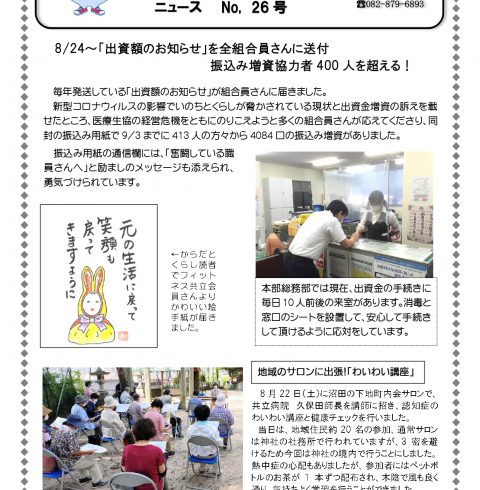 新型コロナウィルス対策本部ニュース No,26号 2020年9月3日発行 今回のニュースでは、毎年発送する「出資額のお知らせ」に経営基盤を強化する >続きはこちら