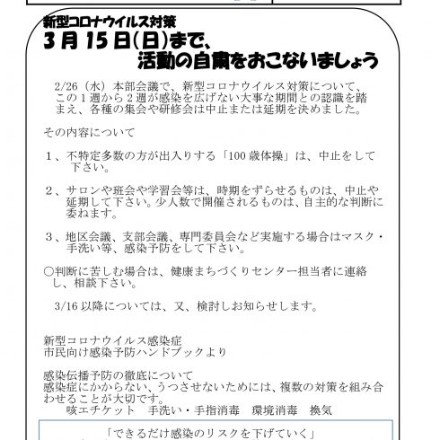 「つながりギュッとちゃんニュース」 第29号 . 新型コロナウイルス対策 活動の自粛について