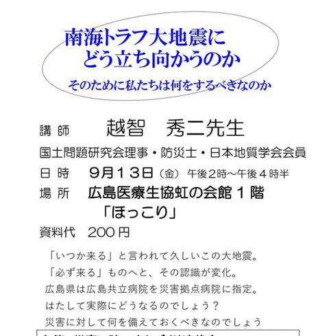 『南海トラフ大地震にどう立ち向かうのか そのために私たちは何をするべきなのか』 講 師 越智 秀二先生 国土問題研究会理事・防災士・日本地質学会会 >続きはこちら
